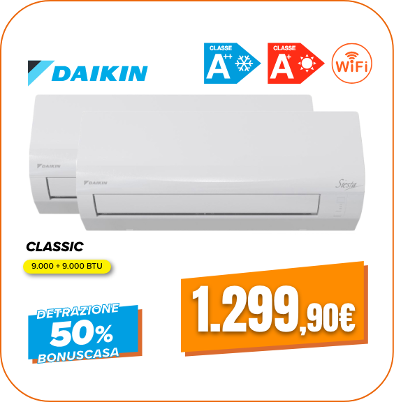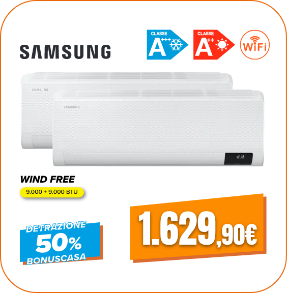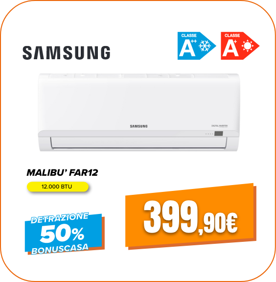 Le nostre offerte comprendono una vasta gamma di condizionatori, tra cui modelli mono e multi split, fissi e portatili, inverter, a pompa di calore e ecologici, tutti classificati con ogni tipo di Classe Energetica. Tra le marche disponibili, Daikin, Haier, Samsung, Mitsubishi, Panasonic, Comfee, Argo, Olimpia Splendid e Daitsu sono solo alcune delle opzioni tra cui scegliere. Non esitare a contattarci per ottenere maggiori informazioni, dove potrai trovare numerose offerte sui climatizzatori delle marche più note e affidabili in termini di prestazioni e assistenza al cliente, comprensive di consegna e installazione.